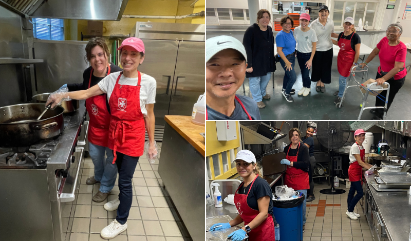 Volunteering at the lunch service with Kathleen were Carolyn Andree, DM; Associate Ky Cam; Associate Linda Franklin (Malade at the Lourdes 2025 Pilgrimage); Associate Rana Jamil; Donna Nelson, DM; and Eileen Sobel.