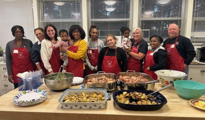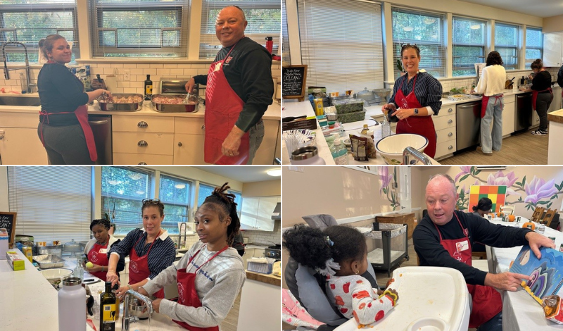 On Thursday, October 9th, the South West Connecticut Area hosted its second Heart to Table event at Malta House, bringing together volunteers, moms, and babies for an evening of warmth and community. Together, they prepared a delicious meal featuring lemon and garlic roasted chicken, Parmesan-smashed potatoes, roasted broccoli, and a fresh seasonal greens salad.