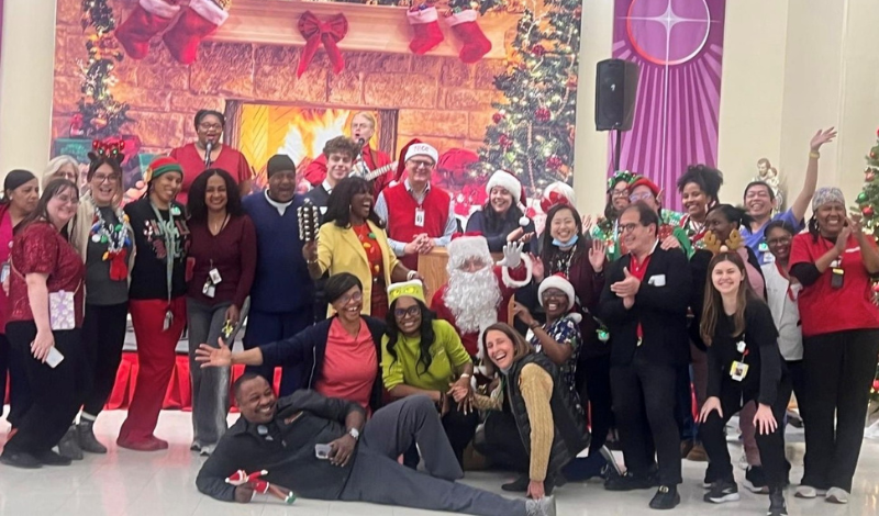 On Wednesday, December 17, Santa and his Elf (and the NYC Area) were back at Terence Cardinal Cooke HealthCare Center, bringing Christmas magic and cheer to the children, young adults, and other residents of Mother Cabrini Specialty Hospital. After the residents were serenaded with Christmas tunes by the live entertainment, Old Saint Nick made his grand appearance, accompanied by his trusty Elf, Christian. Santa greeted each of the residents, who were brought up one by one in their wheelchairs to receive a Jellycat or other plush toy from Santa and his Elf, and to take a photo with this North Pole duo. NYC Area members and volunteers assisted with transporting the residents to/from the Auditorium and socialized with the residents throughout the party.
