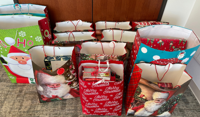 Gifts were contributed by Mike Bonventre, KM, and Sue Bonventre, DM; Rosanne Brugnoni, DM; David Closs, KM, and Noel Closs, DM; Auxiliary Colin Connery and Kiki Connery; Stephanie Le, DM; Marcia McBrien, DM; Eileen Newell, DM; Sean Shriner, KM, and Auxiliary Jenna Shriner; Michigan Area Chair Andy Smith, KM, and Andrea Smith, DM; Mark Thut, Member in Formation; Tom Willis; and Barbara Wilson, DM. The gifts were wrapped by Carolyn Andree, DM; Auxiliary Kristen Andree; Michigan Area Hospitaller Kathleen Mastrangelo, DM, and her daughter Mia; and Andrea Smith.