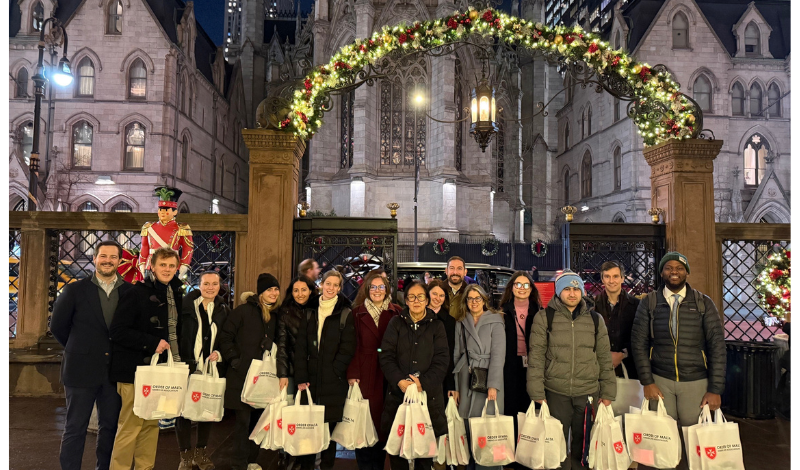After the first snow of this year melted, on Wednesday, December 17th, members of the NYC Area, Auxiliary, and friends gathered at St. Patrick’s Cathedral to participate in the Christmas edition of Malta Walks. After praying together the Daily Prayer of the Order, volunteers prepared 50 Malta Walks bags containing warm socks, gloves, hats, toiletries, granola bars, sandwiches, and Dunkin’ gift cards. With the Christmas spirit in the air, they divided into two groups and headed towards Grand Central Terminal. Along the way passing by the colorful Christmas lights on Park Avenue before distributing their bags to the sick and poor on the streets of Midtown Manhattan, gathering at a nearby pub for drinks and conversations. Please click through the slideshow below to see more photos from this service event.