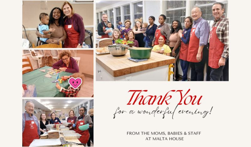 On Thursday, December 4th, the South West Connecticut Area hosted another heartwarming Heart to Table evening to celebrate Christmas. Volunteers from the Order of Malta gathered with moms and babies to prepare a comforting meal under the guidance of Chef Patti Smith. The menu included Parmesan-Crusted Chicken, salad, and homemade chocolate chip cookies—a genuine feast made with love. The evening ended with joyful laughter and baby giggles filling the room. We look forward to sharing another special evening in January to ring in the New Year!