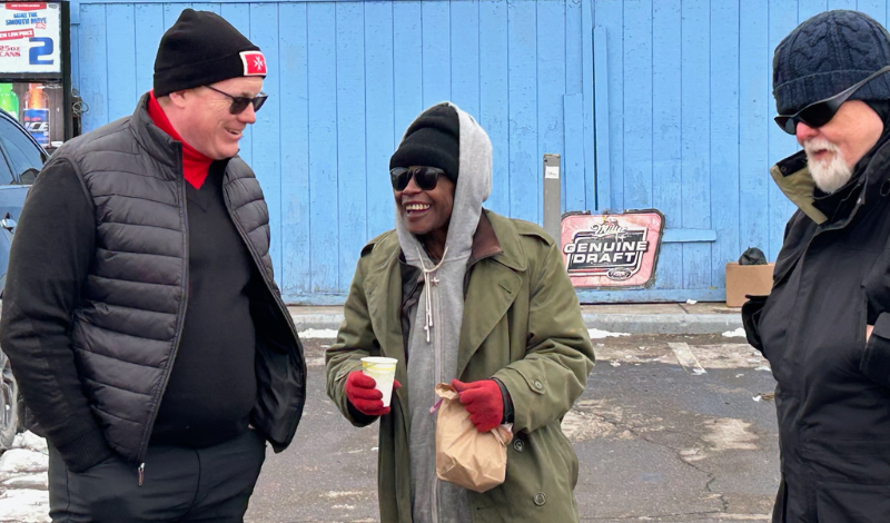 Despite 20-degree weather, Michigan Area members took to the streets of Detroit on the afternoon of January 3 to bring the homeless food and warm clothing.
