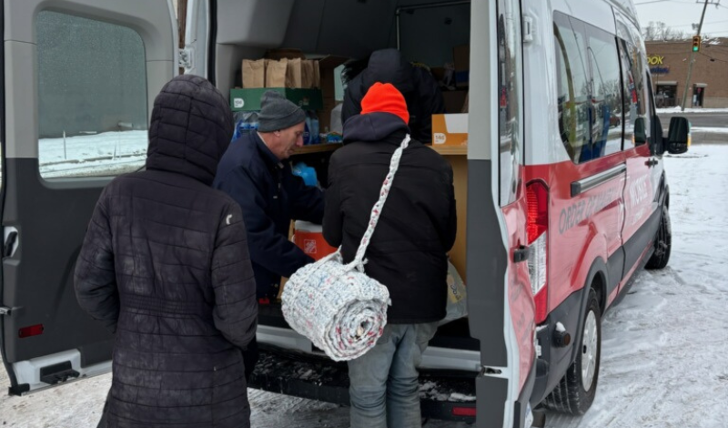 Organized by John Juriga, KM, and Sean Shriner, KM, “Into the Fire” volunteers drive to Detroit’s poorest and most devastated areas in the Malta Mobile Ministries Van, seeking the homeless where they live. In addition to providing food, clothing, and other supplies, the volunteers also pray with the people they serve, upon request.