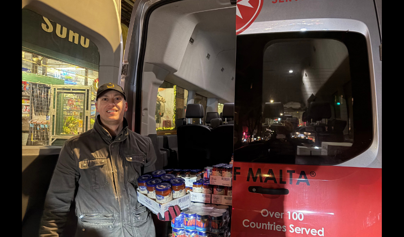 After speaking to Pete Clemente, KM, Fr. Luigi Portarulo at The Basilica of St. Patrick’s Old Cathedral donated 60 cases of Rienzi gnocchi, tomatoes, sauces, and vinegar for the Order to deliver. Steve Bujno, KM, NYC Area Co-Chair and board member of St. John’s Bread & Life, one of Brooklyn’s largest emergency food providers, organized the delivery. Then Michael Smilek, KM, called Italo Sanchez, AUX, and coordinated the usage of the van between ongoing service projects at Thrive for Life Prison Project.