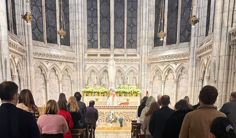 On Monday, February 2, the NYC Area braved the cold to celebrate our First Monday Mass in the Lady Chapel of St. Patrick’s Cathedral. Msgr. Robert Ritchie, GCChC and Chief Chaplain of the American Association was the celebrant of the Mass, which fell on the feast day of the Presentation of the Lord.