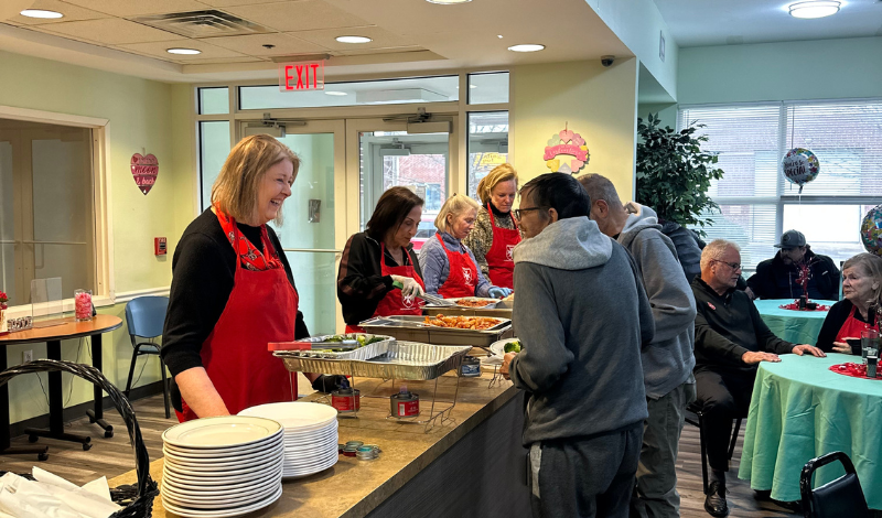 On Sunday, February 15th, Knights, Dames, and candidates in their Year of Formation from the New Jersey Area gathered at The Center in Asbury Park to serve a hot dinner to its clients. Festive Valentine’s Day decorations helped create a joyful atmosphere, and the chicken parmigiana and pasta were enjoyed by all.