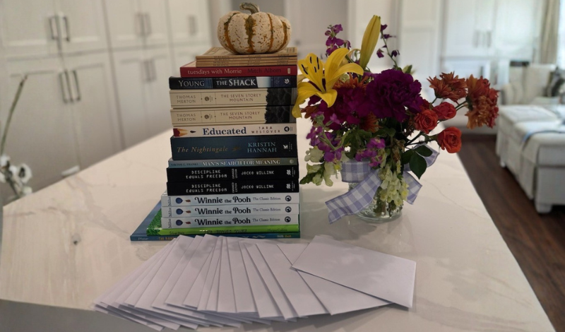 At a recent gathering, members reflected on books that had brought them comfort or renewed faith during difficult times. Each member chose a title, purchased a copy, and wrote a personal note explaining why the book had inspired them. These books and handwritten cards were then delivered to a halfway house in Connecticut, where residents received them as gifts of encouragement.
