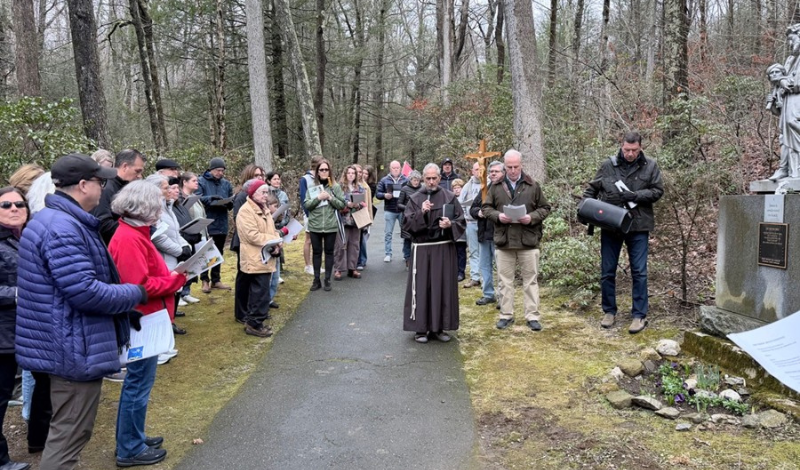 On Friday, April 3rd, a cool spring day, over 50 members from the South West Connecticut Area, North East Connecticut Area, Westchester Area, and seven members from the Federal Association gathered at Lourdes of Litchfield for the Stations of the Cross.