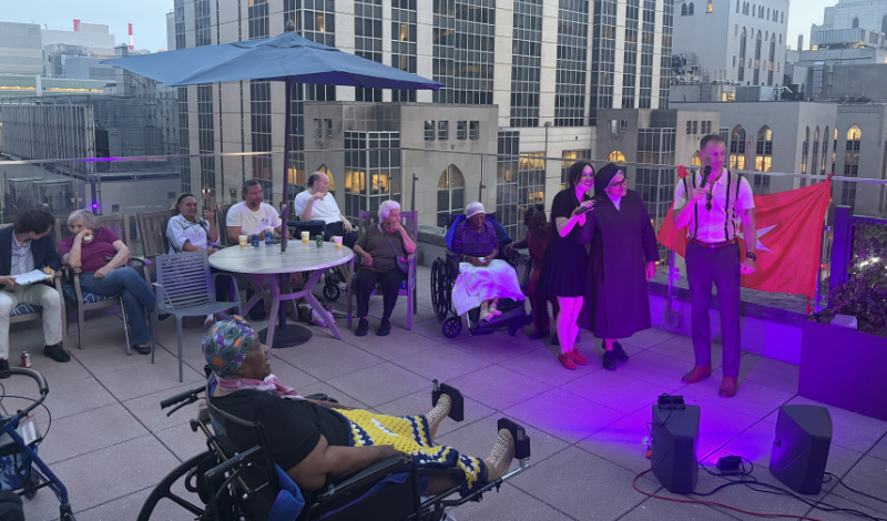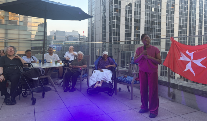 Late Knight Karaoke moved the party to the rooftop patio of Mary Manning Walsh Nursing Home (MMW) on Tuesday, April 14. This monthly activity sent brings together Knights, Dames, Auxiliary and Volunteers with patients and staff of Mary Manning Walsh for a lively night of fun and socialization. Many residents of MMW frequently long for the company and friendship that members of our Order bring. And for those residents who do receive visitors, it is a wonderful way for families to spend time together in a social setting outside of their specific patient room.